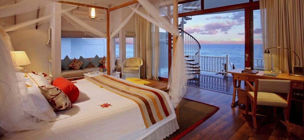 Ideally positioned to enjoy the stunning Indian Ocean sunsets, the Luxury Sunset Water Villas have spacious terraces that are perfect for relaxation.