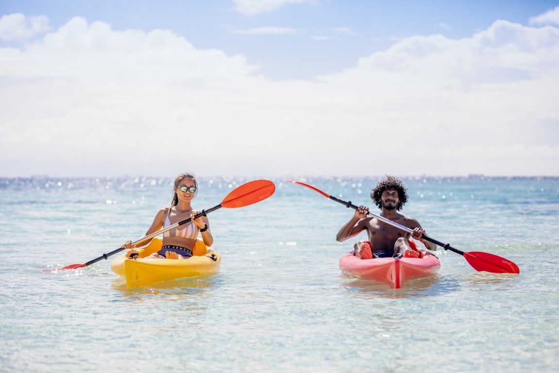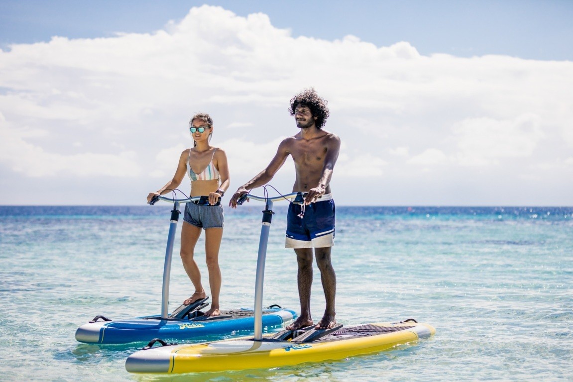 Feel the breeze while gliding with your loved one on a catamaran over the turquoise waters or take a kayak or “Stand Up Paddle Board” and explore the surrounding of the island from another view. A special attraction is the new version of the “Stand Up Paddle Board”, which is similar to being on a stepper in the gym, however with the exception of having the crystal clear water beneath you. For those who like more action, watersports offers windsurfing for professionals or courses for novice.
