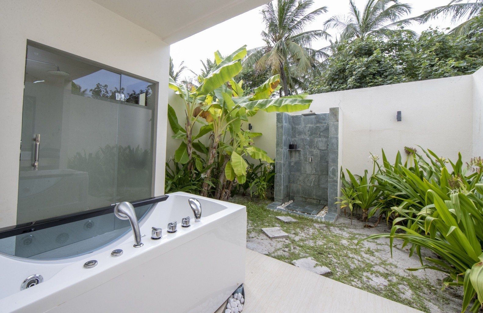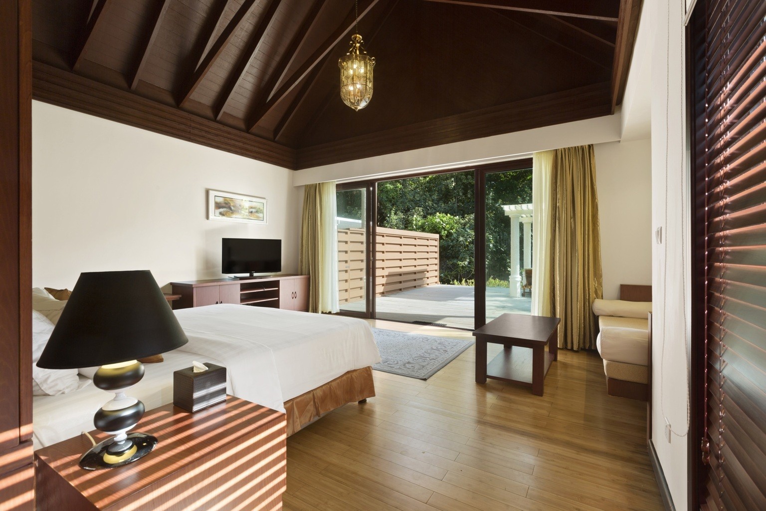In room features:King Size Bed | Dual Vanities | Air Conditioning | Free standing Bath Tube | LED satellite TV | Shower | Free Wi-Fi | Bathrobes | IDD Telephone | Slippers | Extra-Bed Capability | Coffee and Tea making Facilities | In-Villa Safe | Evening Turn Down | Mini Bar | Ironing Facilities | Hairdryer | 2 Bottles of Water daily.