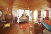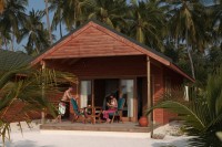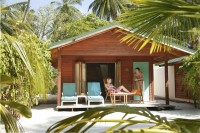 286 rooms include 2 Honeymoon Suites, 77 Jacuzzi Water Villas, 27 Water Villas, 83 Jacuzzi Beach Villas, 77 Beach Villas and 20 Garden Rooms. All feature tropical décor, king size bed, tile or wood floor, private porch with furniture, air-conditioning, overhead ceiling fan, sitting area, stocked Mini Bar with refrigerator, complimentary tea/coffee, IDD telephone, color cable TV, DVD/CD player, complimentary high speed broadband Internet connection, personal safe, partially open-air bathroom (except Garden Rooms) with shower, double sinks (except Garden Rooms), rain shower, bath accessories, hair dryer, bathrobes, nightly turndown service and complimentary use of chaise lounges at the beach and pool and beach towels. Electricity is 220VAC, 50HZ