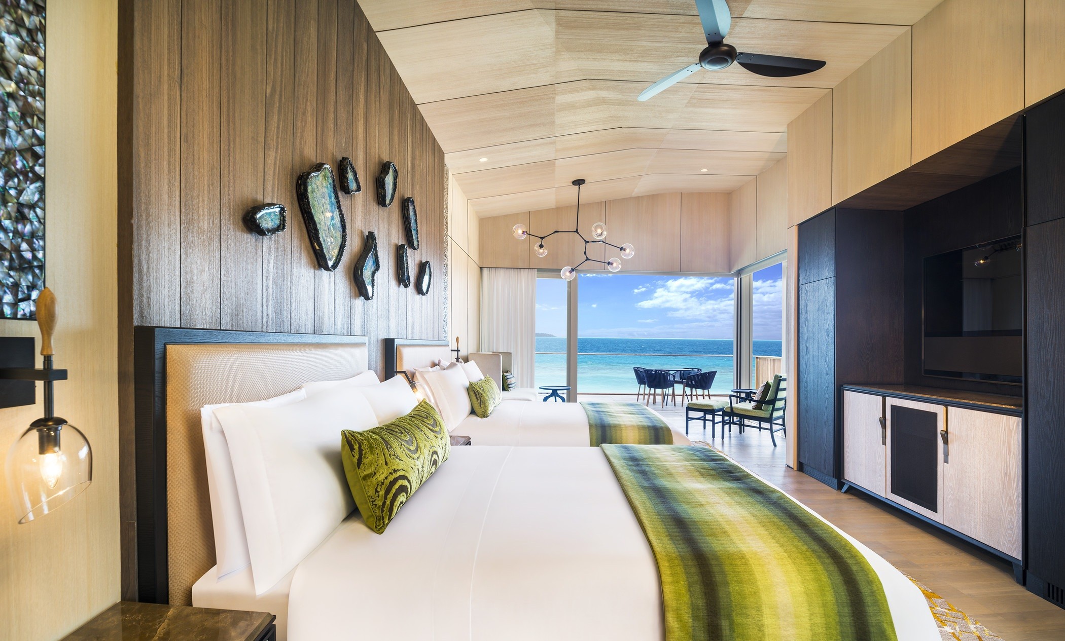 Redefining barefoot luxury, 33 on-land and 44 overwater suites and villas feature private pool in every villa. Suspended by Indian Ocean, revel in peerless lush forest or ocean views from environmentally aware nautical resort that take design cues from the materials and colors that surround them. Spacious and contemporary elegance, the Suites and villas showcase unmatched luxury resort in the Maldives. Catering to an extended generational family that traverses the globe, the John Jacob Astor Estate is among the largest overwater villas in the Maldives, with a total size of 1,540 square meters.