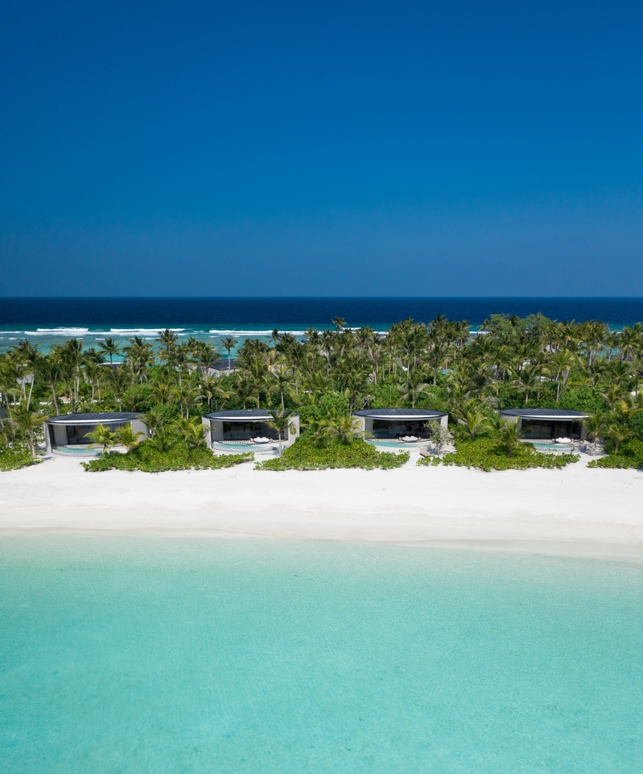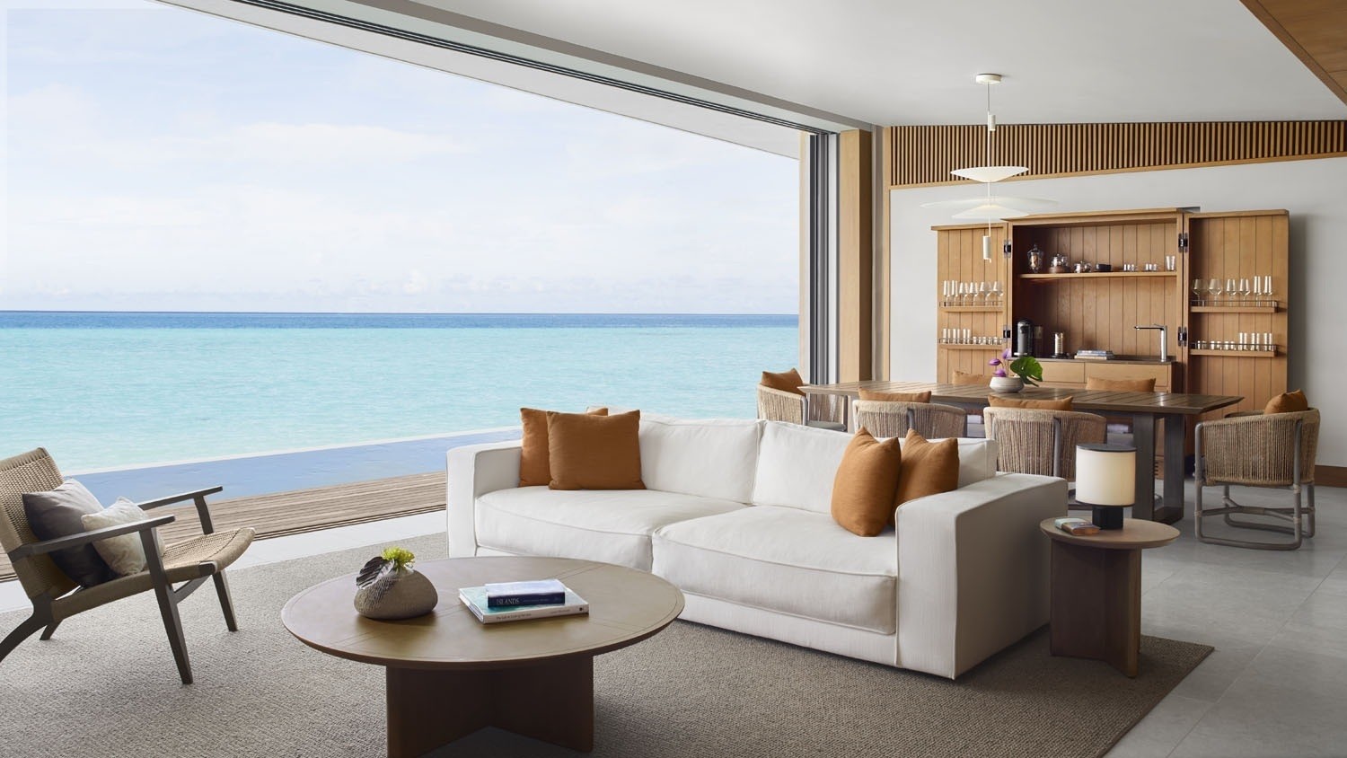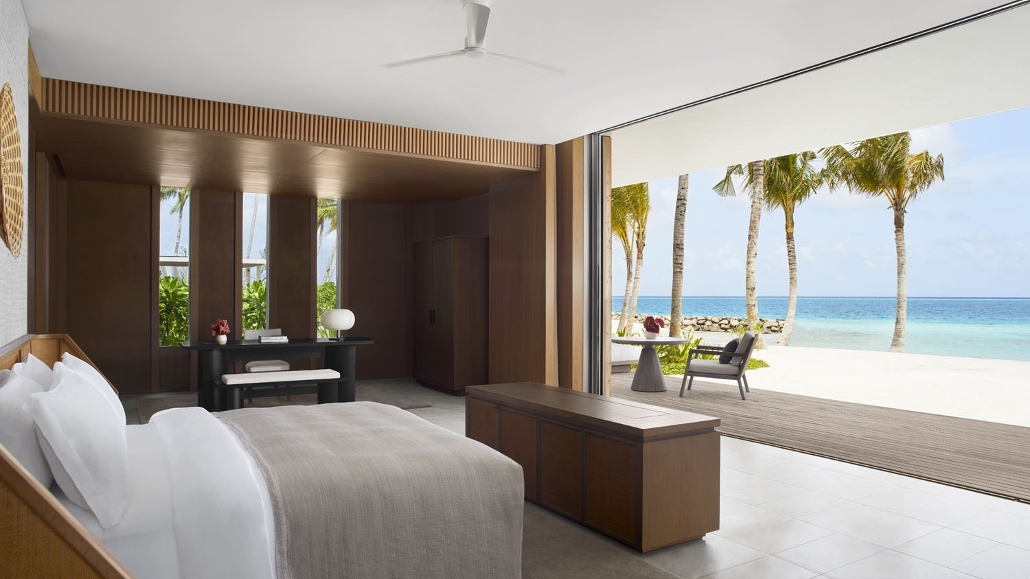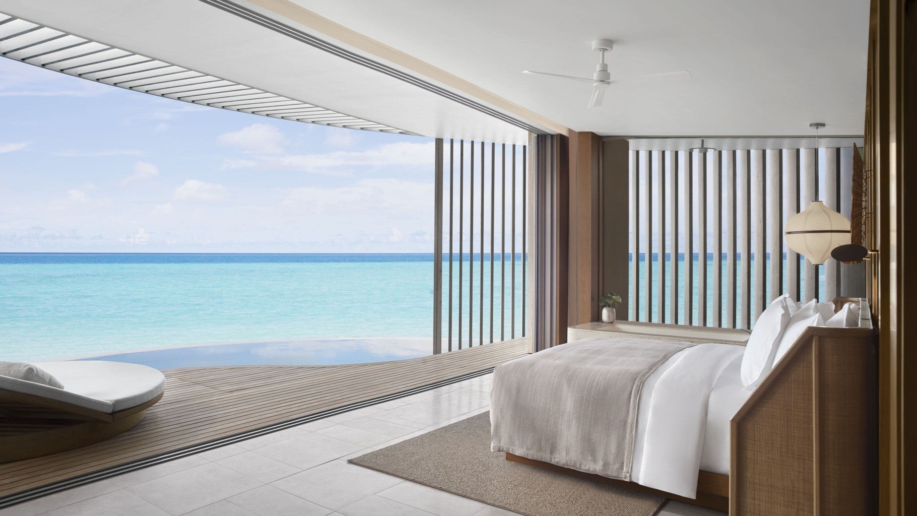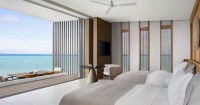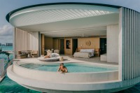 The 13.5-hectare resort presents 100 elegantly designed villas by Kerry Hill Architects, nestled overwater or on the beach are inspired by the ocean forces, wind and waves. Indoor and outdoor spaces, each villa offers a private pool, sundeck, ensuite bathroom and a lavish collection of personalised amenities.