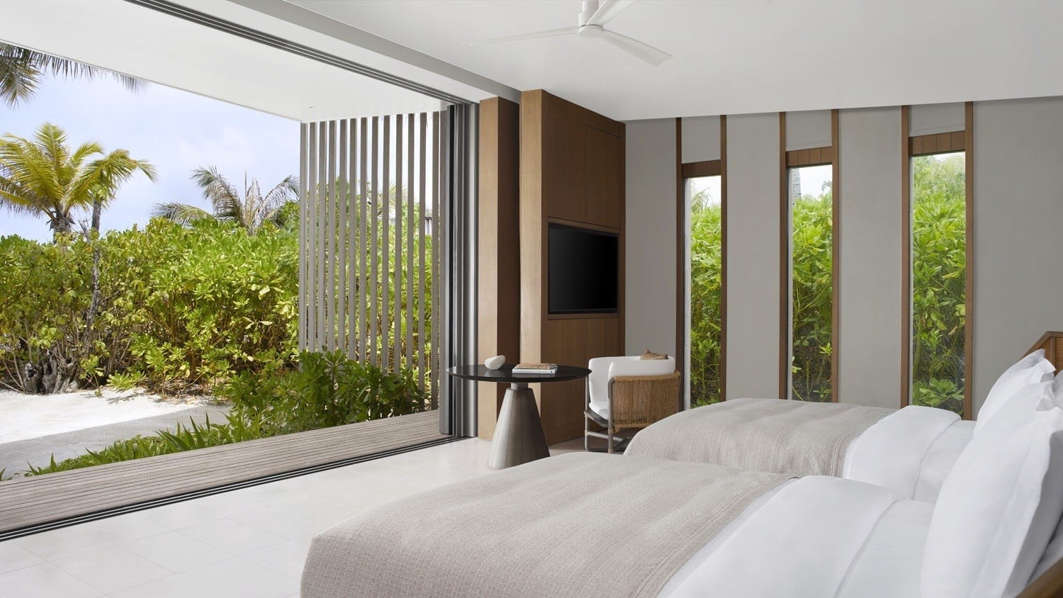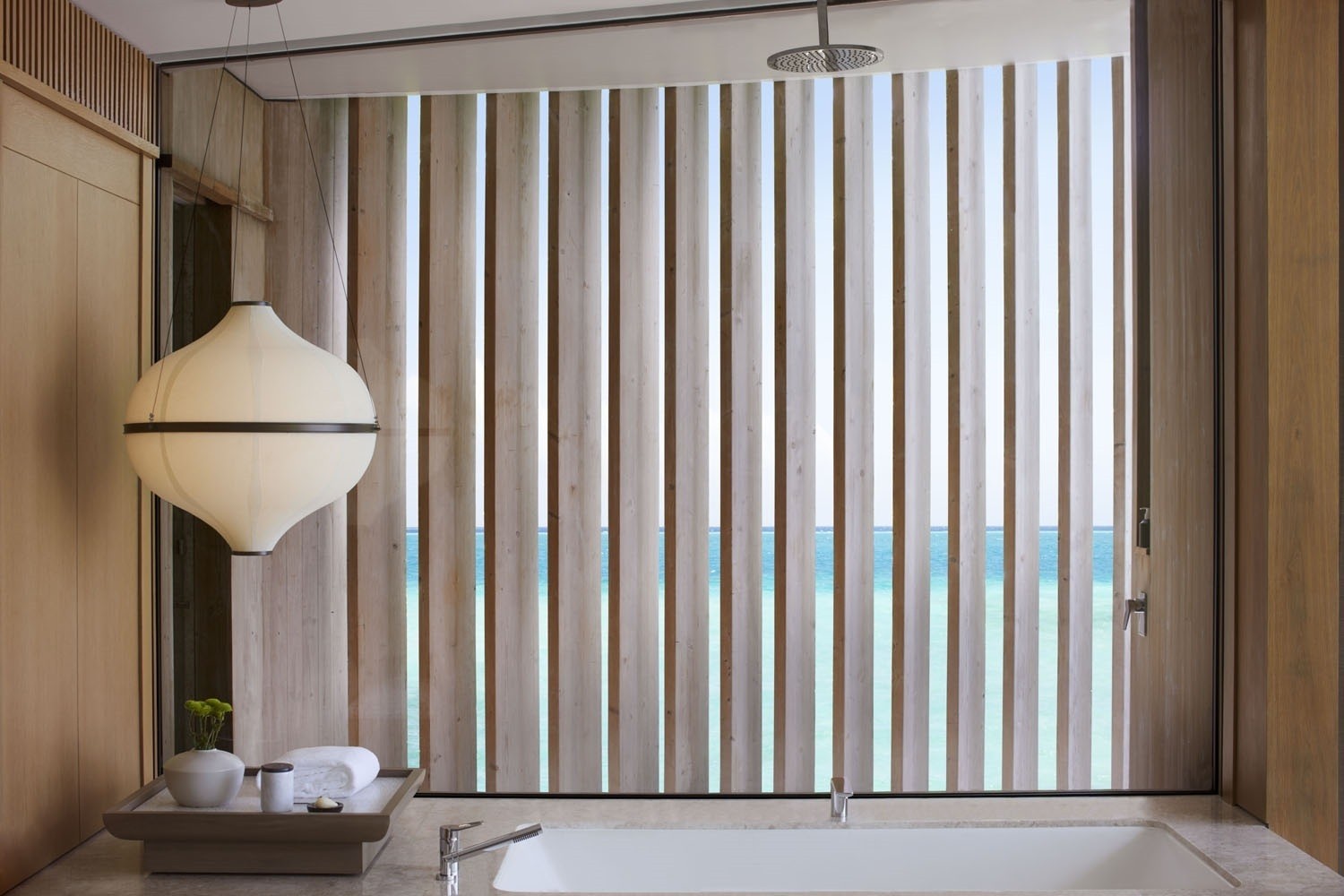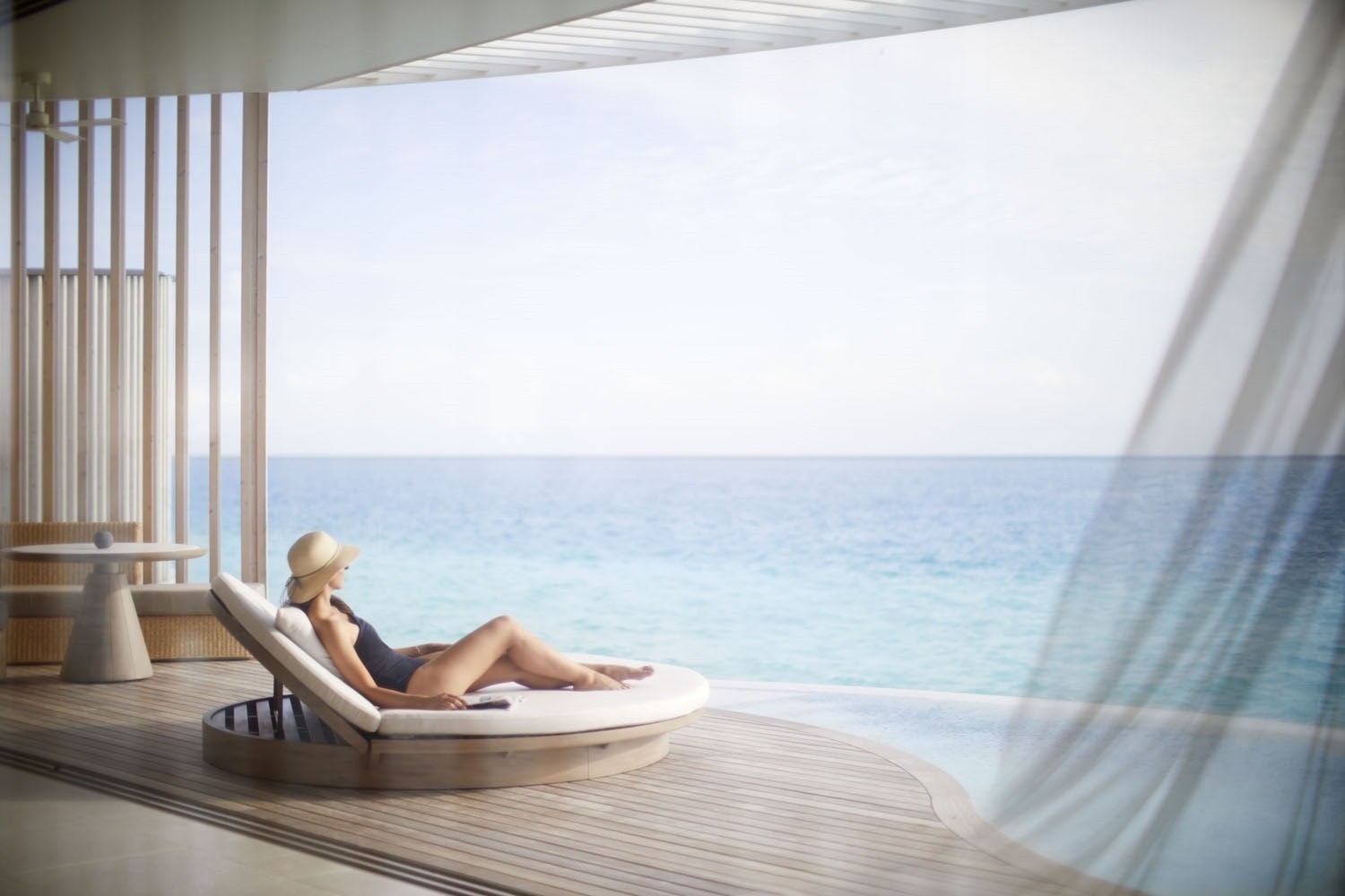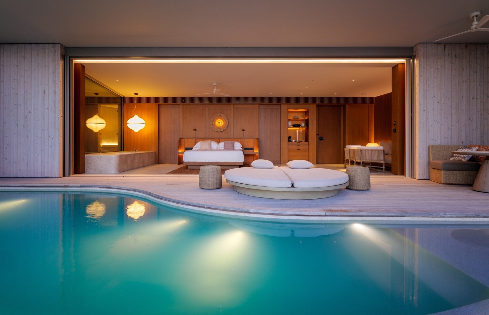 The 13.5-hectare resort presents 100 elegantly designed villas by Kerry Hill Architects, nestled overwater or on the beach are inspired by the ocean forces, wind and waves. Indoor and outdoor spaces, each villa offers a private pool, sundeck, ensuite bathroom and a lavish collection of personalised amenities.